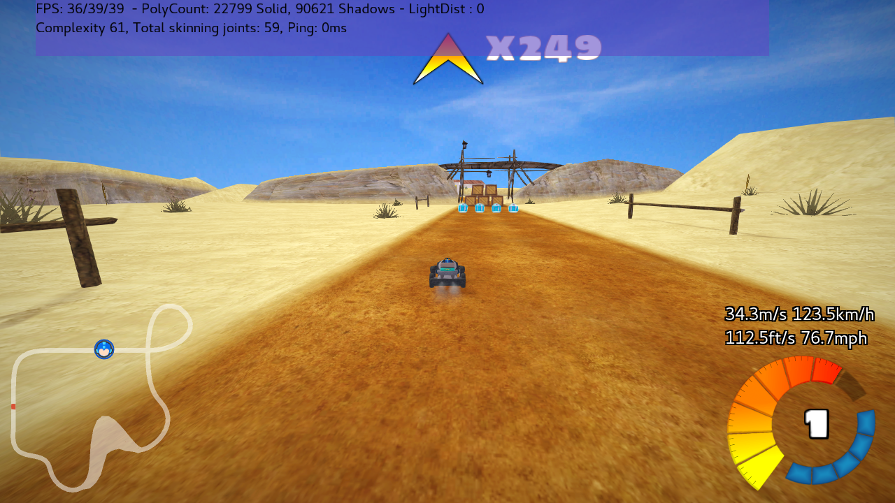 • The speedometer does not display if a kart is not driving forward, same as from 0.8.1.