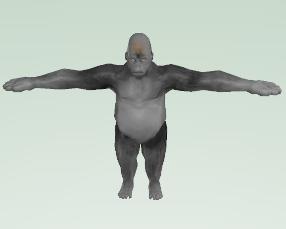 Yes, I looked for gorilla images on Google and I found that most gorilla only had those brownish marks on their heads, and the rest of the body was black/grey. Here is a first .blend. I rigged the model and fixed some parts of the texture. The model has 1916 tris.