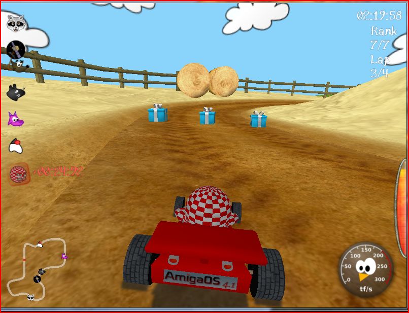 There is a problem with Amiga kart's icon showing up properly, if at all, in the mini-map in the lower left hand corner. I've uploaded two screenshots to show what this looks like. In the first one, Amiga kart shows up as just a red dot. In the second one, where I'm playing Amiga, he doesn't even appear at all. After a little investigation, I noticed the following output in the CMD window that accompanies the main game window...