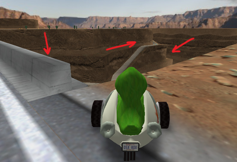 horace {l Wrote}:i have cleaned up the canyon blend file. shading is correct now and i made the cactuses, stones and so on separate b3d objects. i have also used the bigger versions of the asphalt textures. there also were some other small problems. for example the connection pieces between the various track segments somehow were shifted slightly (the vertices weren't snapped correctly anymore) and the skycube textures weren't at the right places (the river didn't flow into the river on the skycube.).