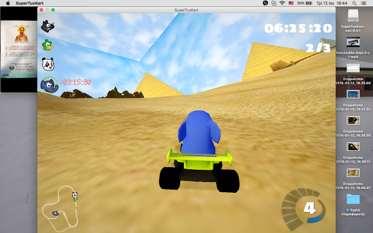 skybox, and it seems something went wrong here. I've seen this problem in most of the tracks, so i guess this is not a problem with the textures, but some small bug in the engine. Usually, it is not quite noticeable, as the camera rarely uses a pitch angle that makes the top or bottom of the skybox visible. Mhm, maybe this has even already been fixed in the development version.