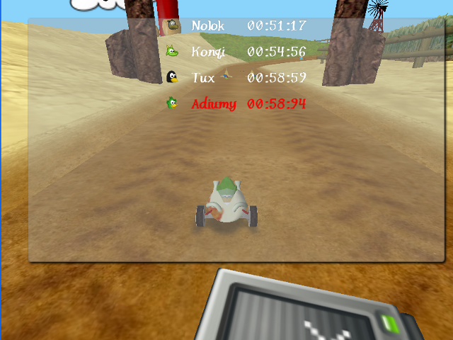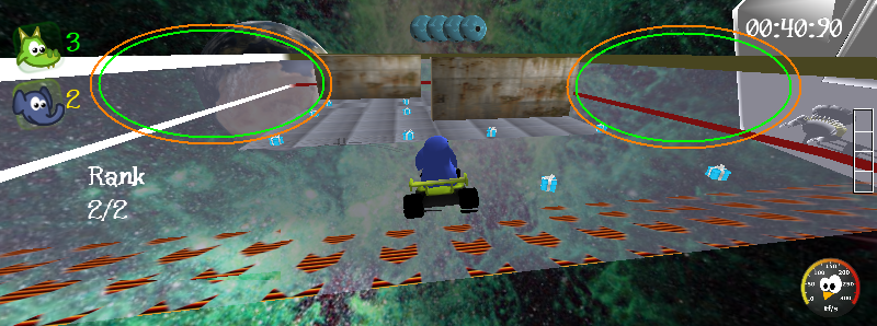 hiker {l Wrote}:Atm we support two different end cameras: the one where the camera is in front of the kart, and one where the camera is at a fixed position on the track and always points at the kart (and zooms in appropriately). We certainly want to support more different end cameras, so we can have a look at the 'ahead of the kart and to the left/right' - but note that this is actually the same for all karts, so that might not be ideal for the more asymmetric karts (one reason why I don't particularly like iceblock kart). Still even then it would be up to someone to define the camera usage in each track (or to come up with an algorithm to automatically select a good end camera).