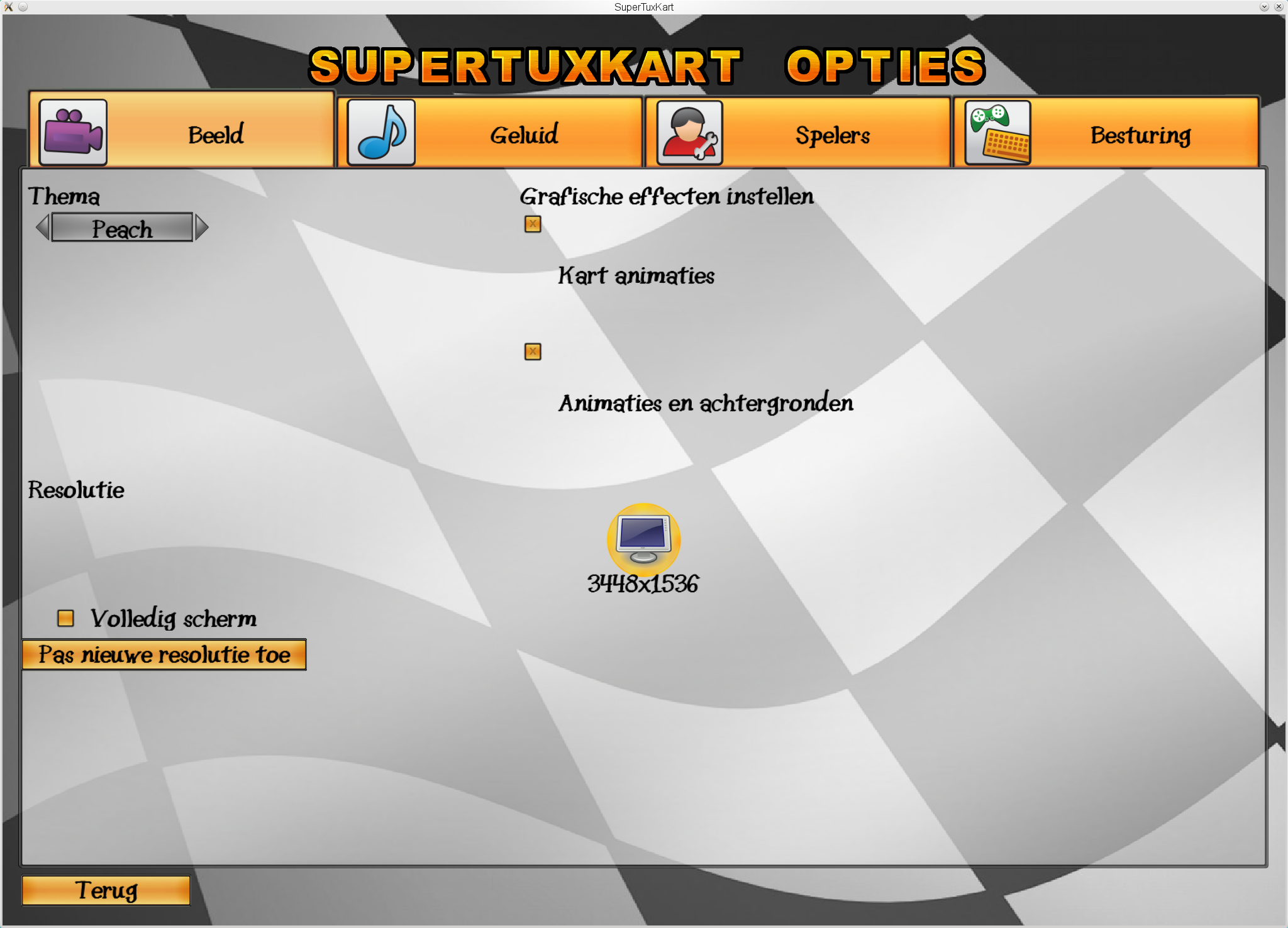 The X server operates the two monitors (1400x900 and 2048x1536) as one big screen (3448x1536). I would like to run STK on one screen, e.g. in window mode at 2048x1536. However, in the Options dialogue I'm only given the option 3448x1536 (see screenshot).