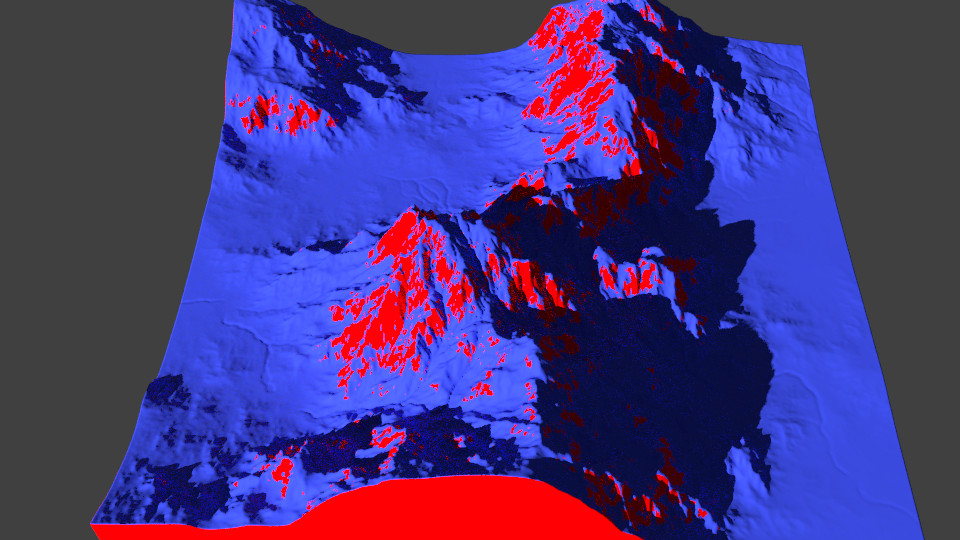 Up until now all my algorithms for generating splat maps have relied on flattening the terrain and operating on it as an image.