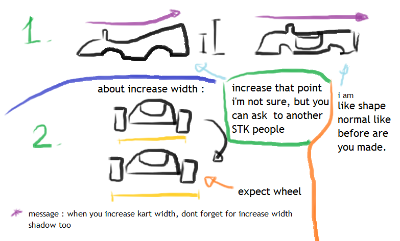 2. important thing is shadow, then about width kart for increase again by very little bit, if you feel weird don't do it.