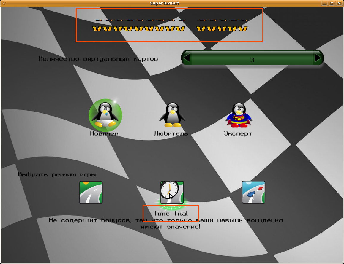 2. Headers (Choose a cart, Race setup, Challenges: Trophy room, SuperTuxKart Options, SuperTuxKart Help, Credits, Grand prix, All tracks) are looked like this crazy sharp zippers: