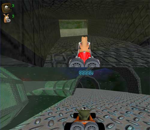 The problem was that we always, always hang in the walls and could hardly move out. As the track is very narrow, it can easily happen that you crash into the wall (say, if you want to turn from one level to another), and then it's sometimes not possible to get away from it, resulting in being very vulnerable to any kind of attack. This somehow spoiled the fun for us.