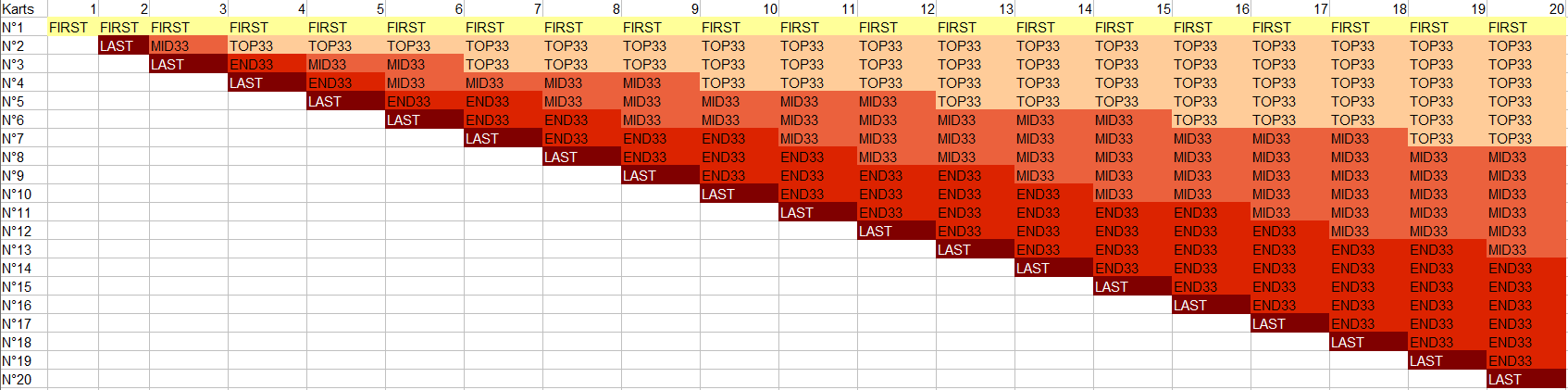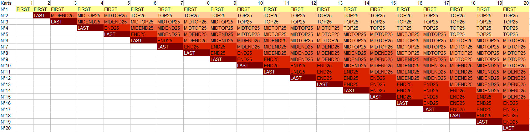 Note that obviously, this calc doesn't take in account the effect of the different position class (first, top25 etc) : so adding a kart may improve the probabilities by having a more important increase in <karts which can have the global item>. But ultimately, this will go in the other direction with the next one, and the global picture stay the same.