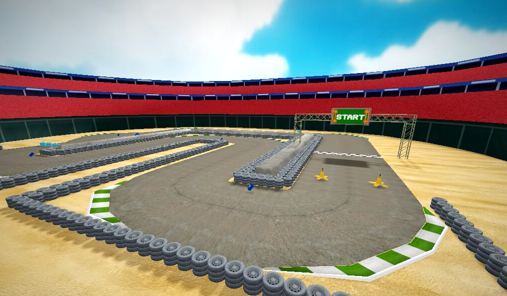 • Crates (actually just stretched cubes) using textures from https://opengameart.org/content/shipping-container-texture-pack (made by p0ss and dual-licensed under CC BY 3.0+ or GNU GPL v2+) are placed to stop karts from driving across the lower portion of the track and skipping all the turns. Other crates are stacked to stop karts from going into places they shouldn't go. Some of the drivelines are placed after some endings of the crate walls, so even if the crates weren't there, karts do not have their lap counted if they skip all the turns.