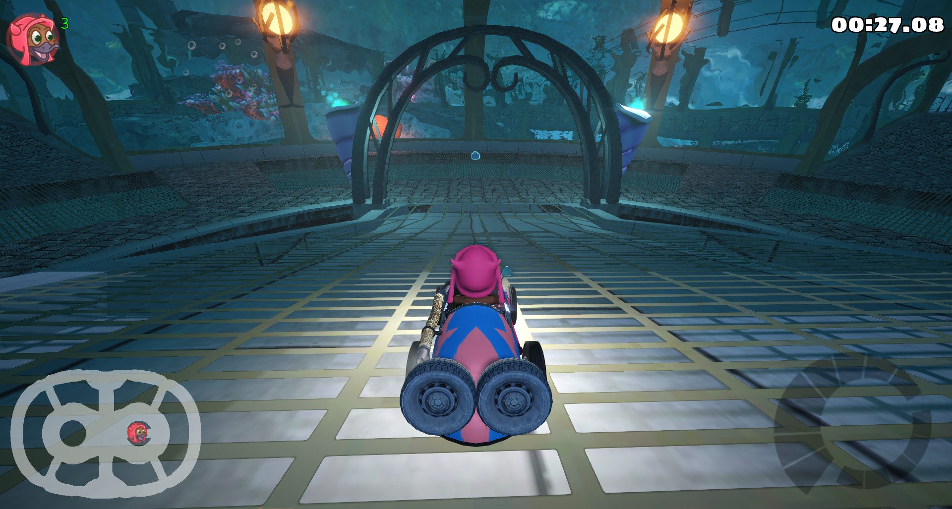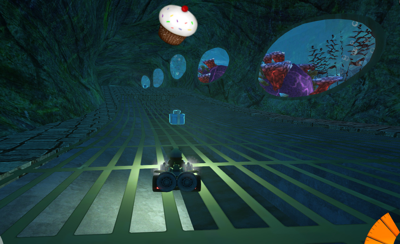 c) The grid looks giant and it looks like the kart could fall inside. I know I made the same mistake, but you are welcome to do better than me.