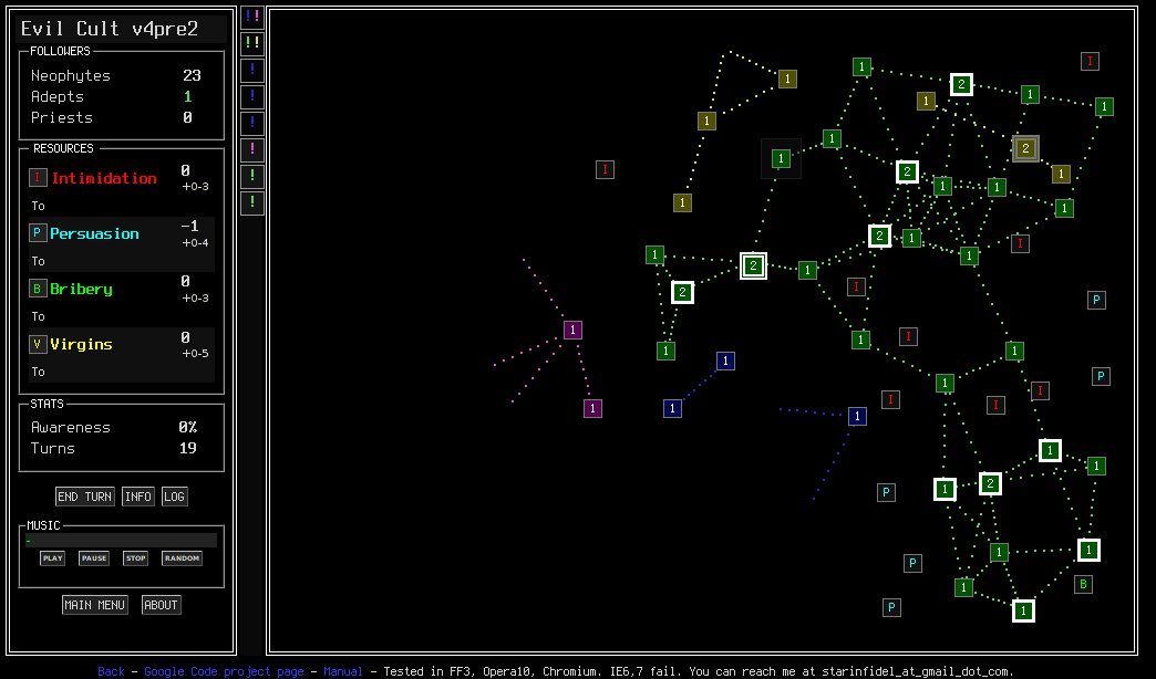 > I just played Evil Cult for the first time, because of qubodup's blog post, and it's really a great, evil joy. Even losing is fun because of the wicked text messages.