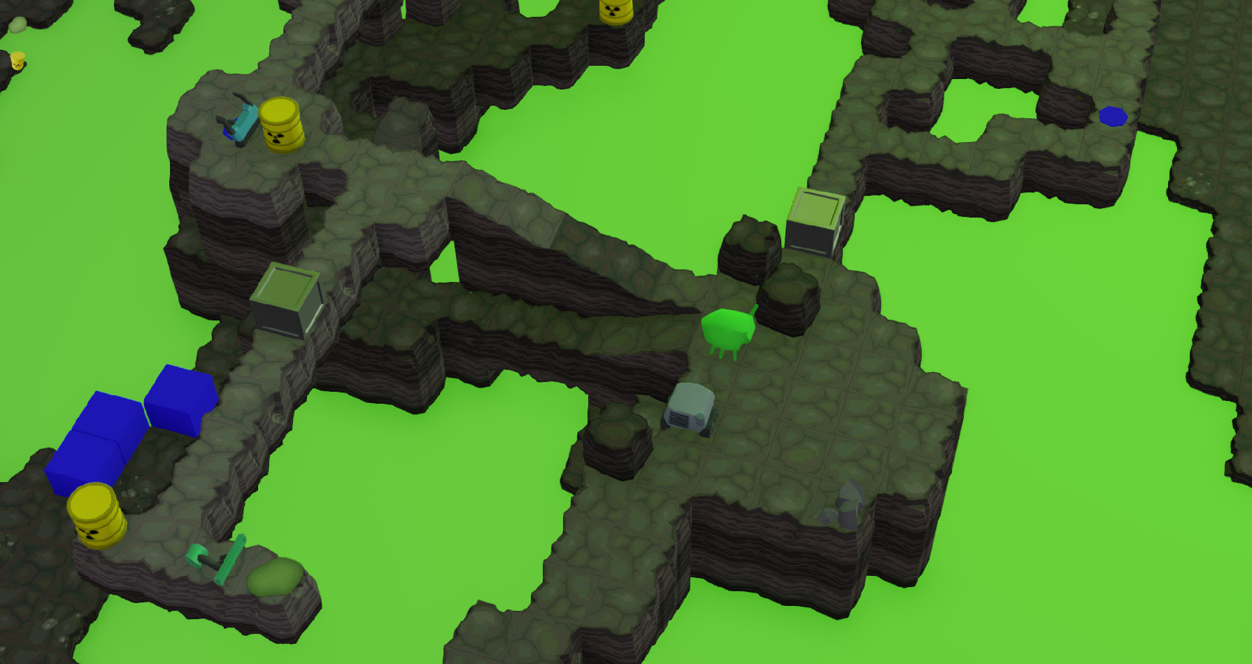 In nucleagacy you have to use different tools to solve the level, these tools can be taken / attached to the player and used for pulling objects, pushing heavier objects, grinding stone piles to dust or clean radioactive puddles. For a better understanding just watch the first video.