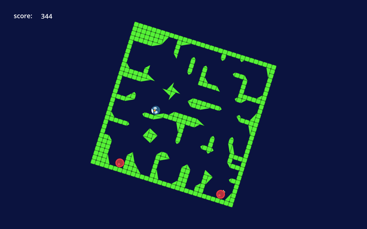 This means the player always rolls and falls down, while walls and the stars to collect rotate with the level.