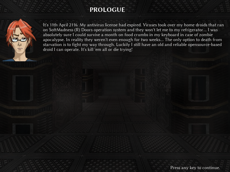Today I was thinking of some virus-damaged droids preventing the player from accessing the kitchen refrigerator becuase his antivirus license has expired :)... And only option to starving to death is fighting his way through. Kinda FreeDroidRPG setting. Still not sure, but that might be something like "Open the Fridge" or "Save the Fridge"