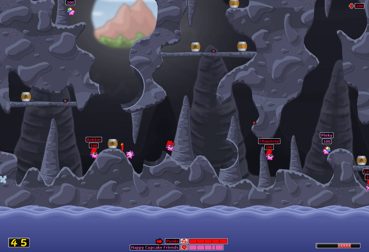 Choose one of dozens of weapons to destroy your enemies: Try the good old bazookas and grenades, attack with your trusty shotgun, send a homing bee ;) flying to your target, or cause a lot of damage with hellish hand-grenades, watermelon bombs :D, ball cannons and many other weapons. Use utilities like ropes and flying saucers to reach new terrain. Various extras, such as collectible crates, proximity mines and explosive barrels spice up the gameplay.