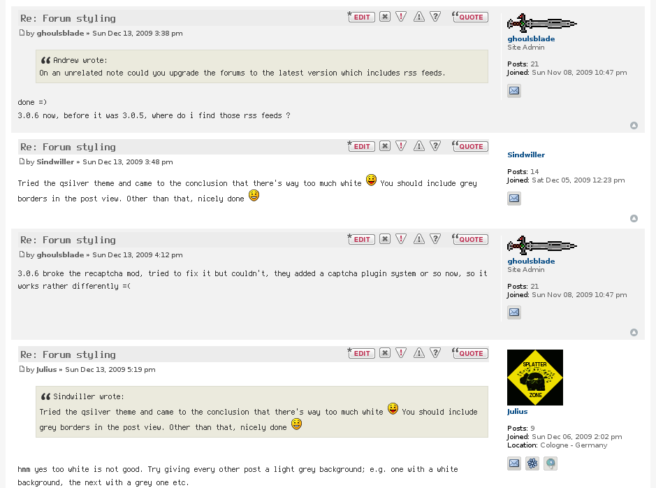 Question: Do you think having a dark theme as default (what guests would see) is acceptable? For this forum? Examples: http://alientrap.org/forum/viewforum.php?f=28 http://www.flickr.com/photos/qubodup/se ... 90/detail/