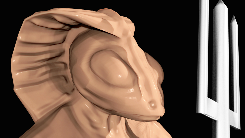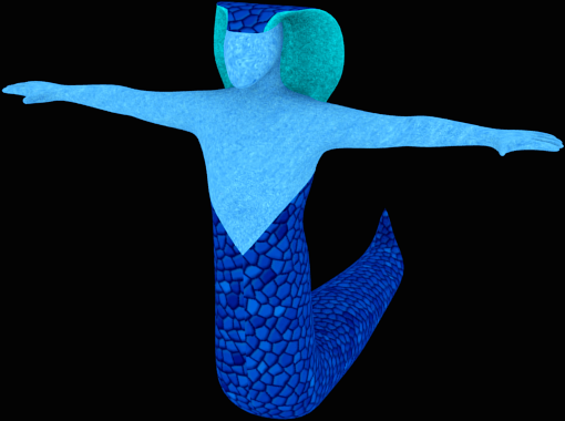 New naga mesh. I like this one better (still lot's of work to do with mesh - face and collar - and texturing). No problems with rigging tail and saving pose this time. Made with aid of MakeHuman.