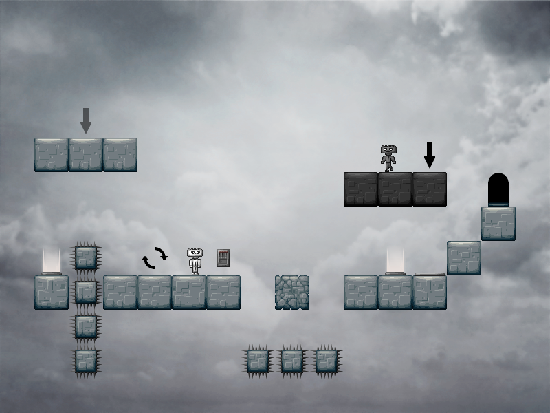 - Teleporters have a bit more colour, making them visible on a white background. (The colour is the opposite of the blue used on the blocks; red/orange)