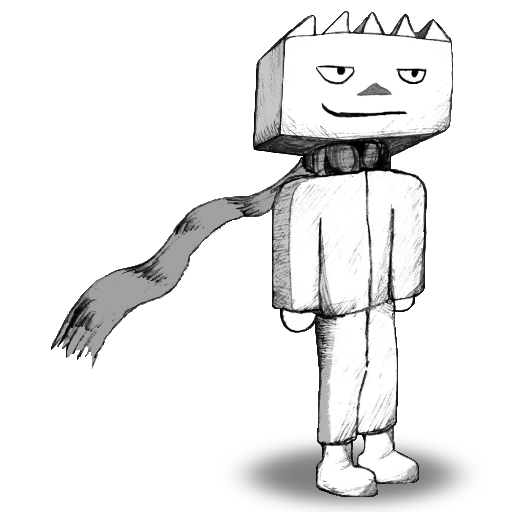 I actually had the shadow of the character as a shadow projection first. I drew a long shadow on the floor, connecting the feet of the character with the silhouette of the "shadow" on a wall. I also tried having the shadow only on the floor. Sadly, this made the composition a bit unbalanced(/large) for a stand-alone picture, though very stylish :D. I think it's a great composition for in a scene or larger artwork. I went with only drawing the "me" as a stand-alone character, because I knew it would look better as a small separate picture and because it's less work for something that hasn't got a use yet.
