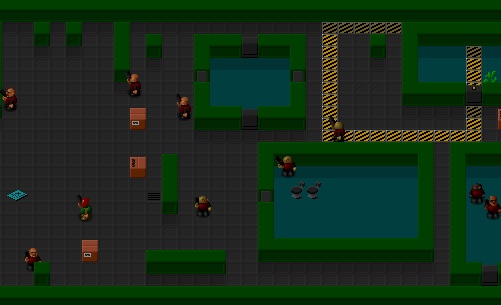 C-Dogs is an overhead run-and-gun game. This is what a typical C-Dogs level might look like: