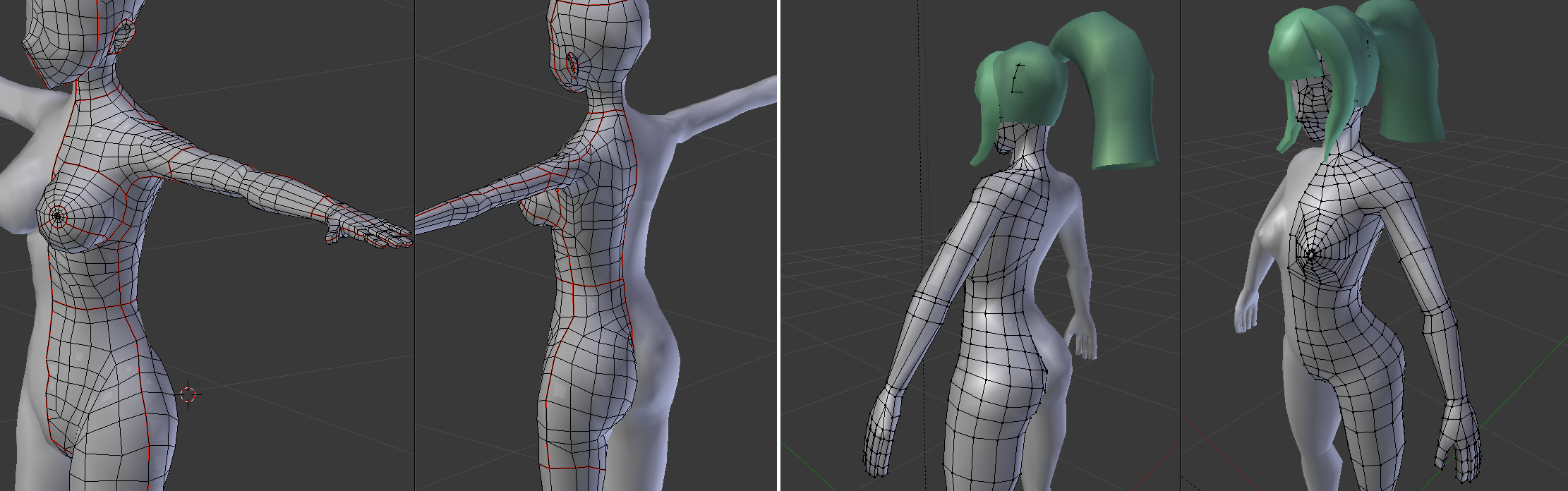 Umm, well another thing: I can understand that it is a nice exercise for any 3D artist to create those ermm... anatomically correct models, but IMHO both are not really top quality so to say. On the other hand there are some really top quality anime models on Blenderswap (freely licensed) that could probably adjusted to be game ready.