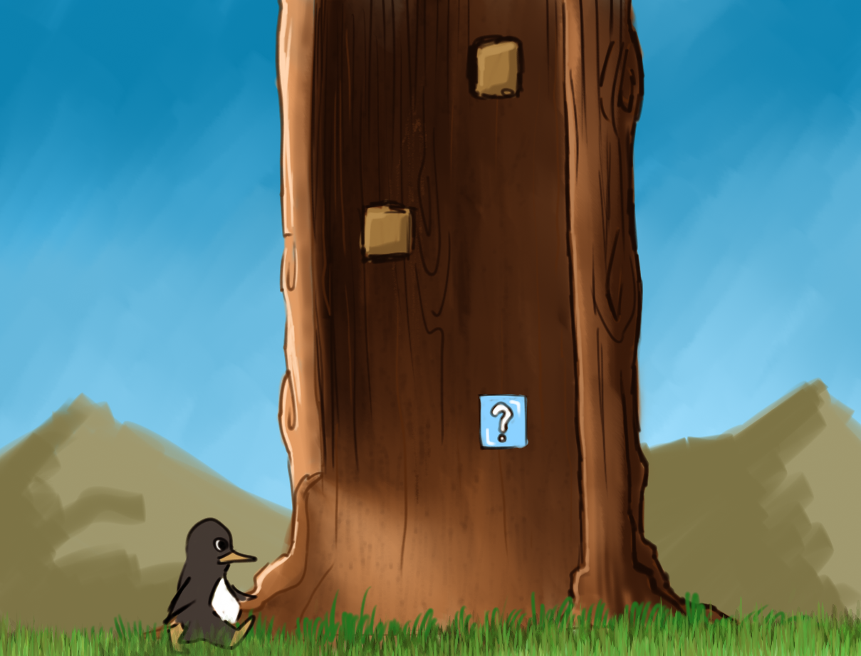 I really like the concept art of the inside of a tree and I’d say it’s a necessary part that has to be added to the game. When it comes to leaves for such trees I had the idea of having a leaf pattern in general that can be used for a top aligned background and it could also be used for thinner tree stems, making it feel more like Tux is inside a forest.