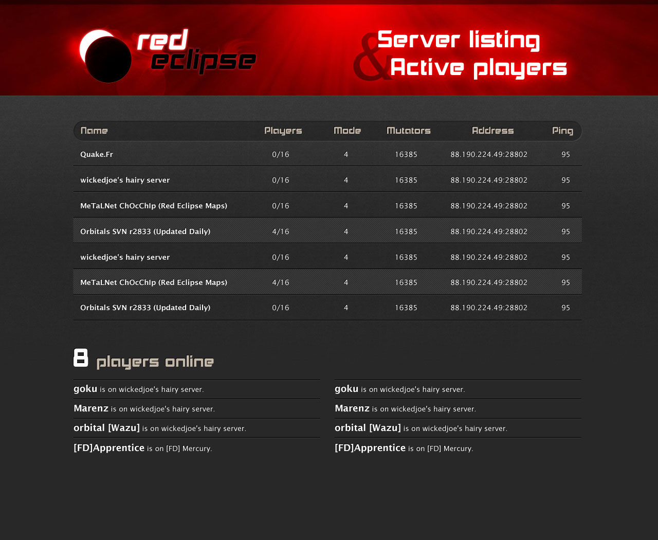 The new, permanent address of the master server list will be http://redeclipse.orbitaldecay.com. Feel free to update your links / bookmarks :)