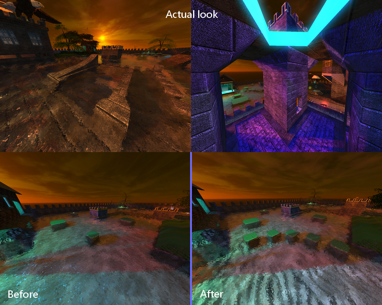 Upper: added ramp to get easier on the towers; actual look from castle