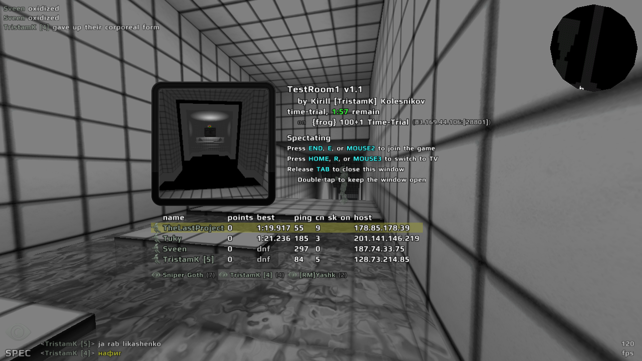 XxDarkusxX (187.101.113.107) was a teamkiller with a score of -42 when he left the game. I had to drop my screencapture of the score in order to get his IP when he left so I know it is just my word against his. Anyway, here is the capture of him leaving. Is there an easier way to get someone's IP?