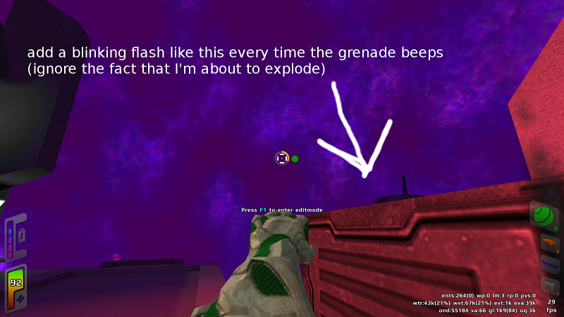 ignore the grenade stuck to the box in the corner of the screen, pretend it isn't there and the grenade in hand is making the orange flashes