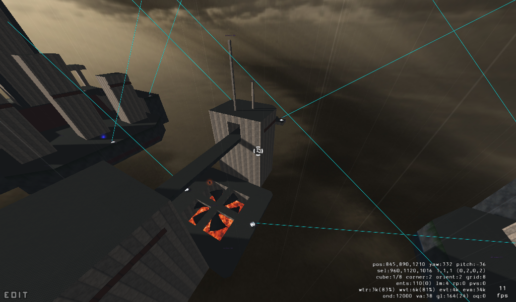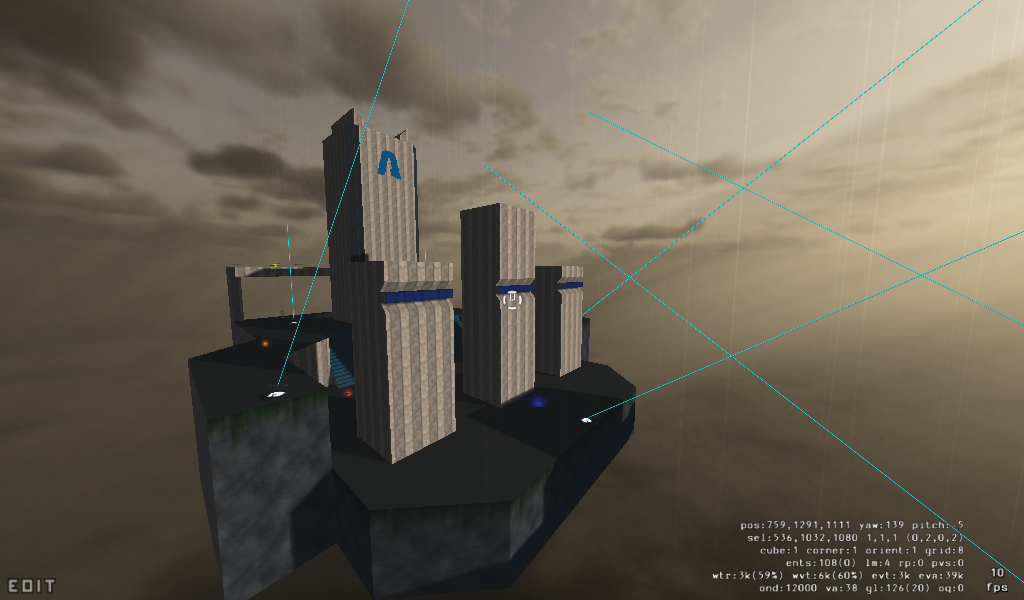 The map is similar to Linear in that it's a random floating construct, but do something I've yet to see in any of the Red Eclipse maps: some sort of floating island of sorts, instead of just flat nothingness. Raise absolutely everything on the map higher, raise the height of the skybox, and start making some jagged, rough, randomly chipped cone shapes at the bottom, to give it the look of that fantasy-style floating island. Now, that's just an idea. You could easily give it some glowing border around the bottom, or big thrusters to make it floating, or something. That's a bit of an experimental idea, and I don't know how far the Red Eclipse editor can go, so feel free to ignore this entire paragraph if this can't be done, lol This was mostly just an idea on my part anyway. Some food for thought.