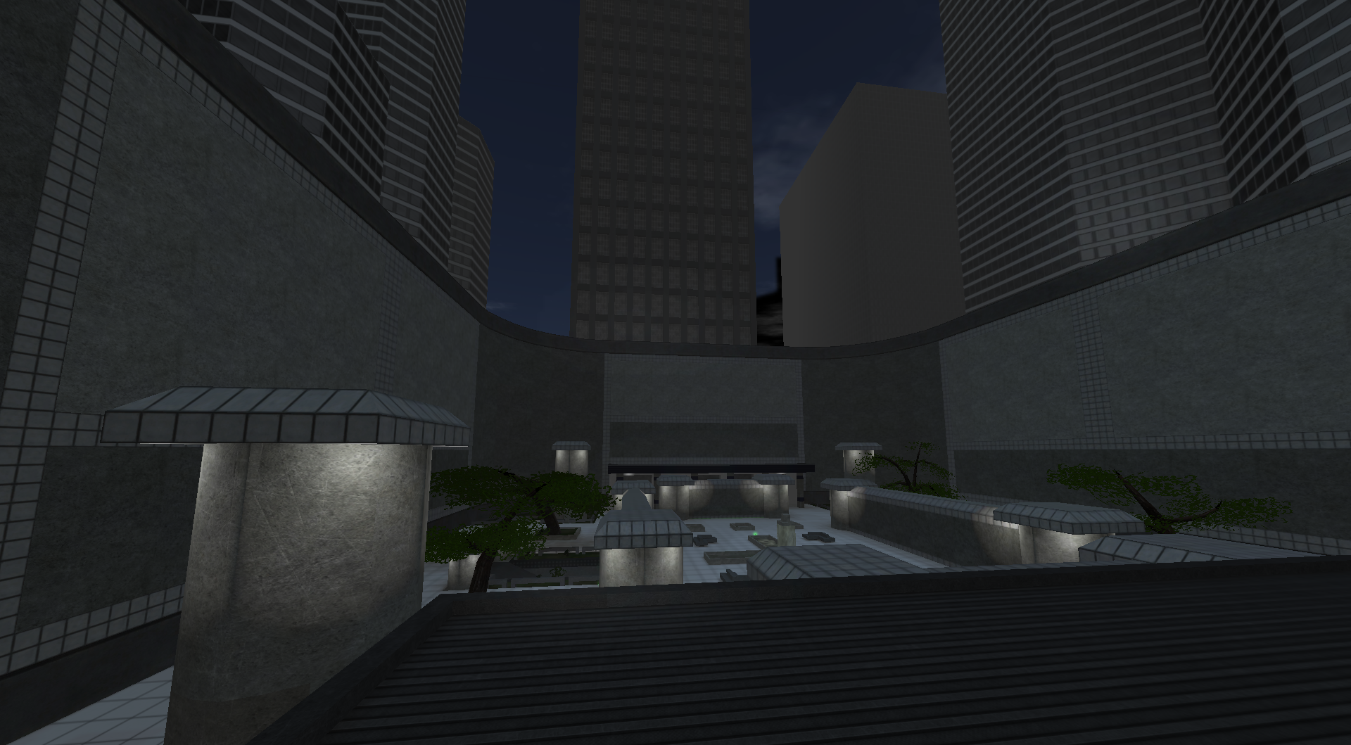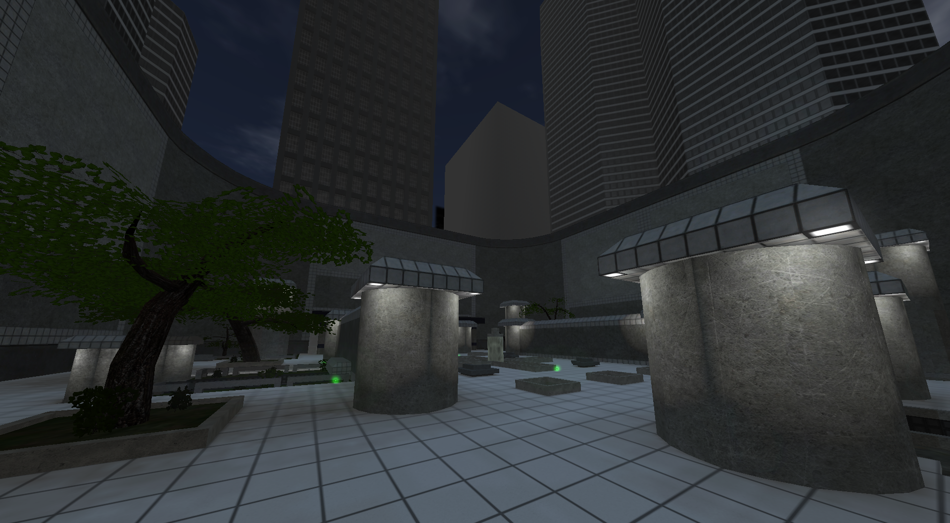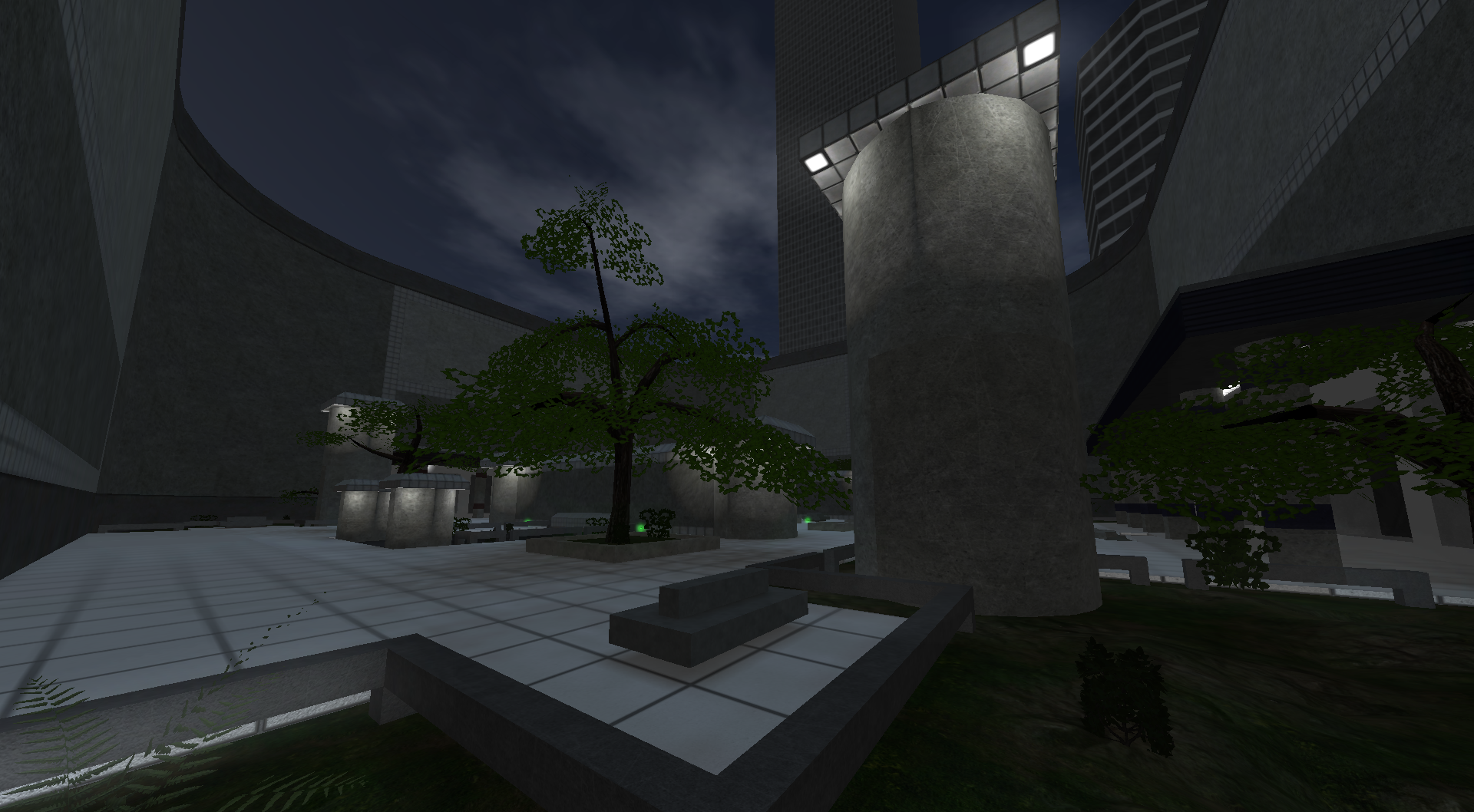 I would improve this some way. Just try some ideas like colored lamps or a sunlight from a low direction, improved texturing... there are many possibilities. Other things I realized: the ground feels a bit flat sometimes. Maybe more differences in heights could change that. On the other side there are the benches and other details as we would be in a park. These things are good, but can disturb the flow of gameplay a bit. Maybe you have an idea for that (lower borders, or noclips or something else). The place for the teleporter is ok for me, the particles look good also. Only the fast blink effect as a part of the design could be reduced a bit. The player could come out of the waterfall after transporting maybe, mmh... *loud thinking* .. I dunno here.