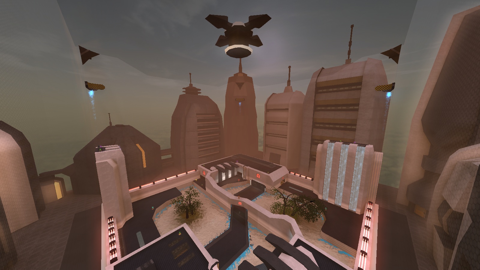 I added mines for the new version and removed all the old trigger enteties and the complete skyline. All of this, to be able to install a kind of glass cage around the map. After that I could rebuild some new buildings around the scene. It feels more like an arena now.