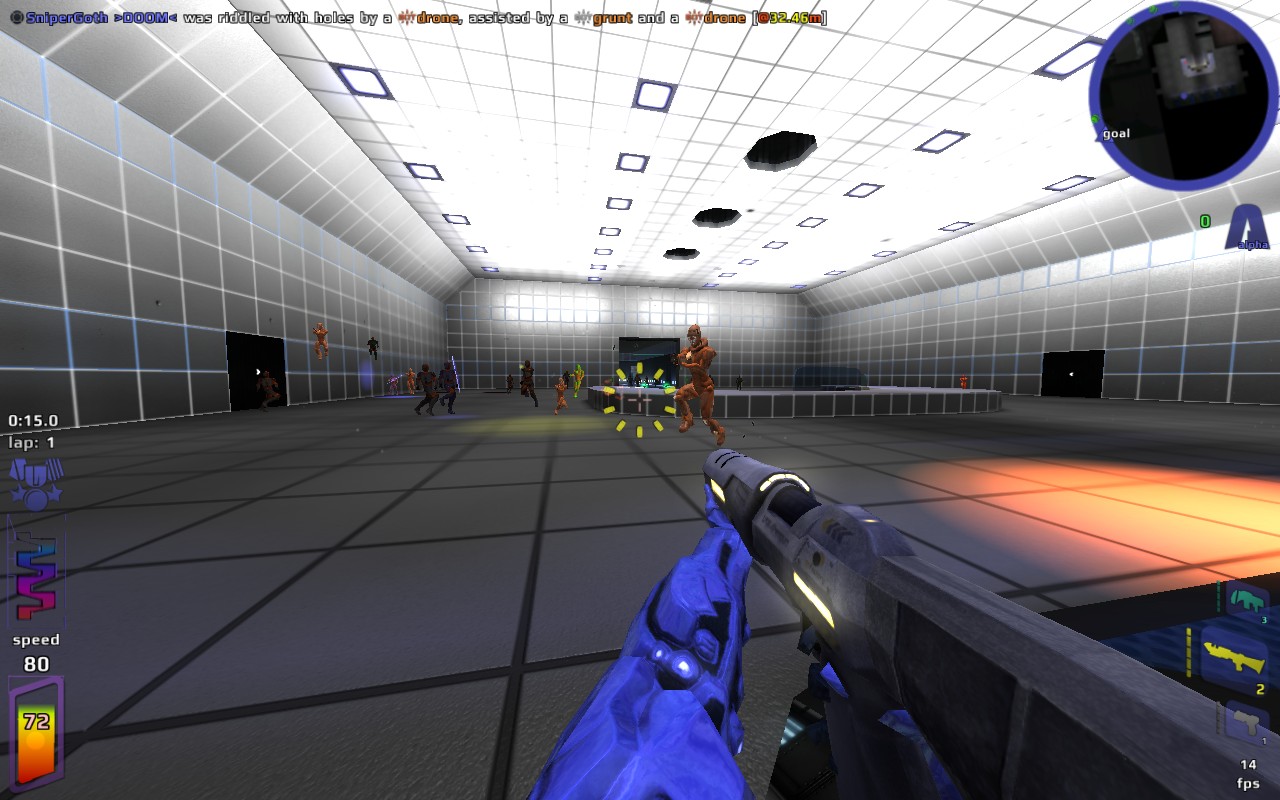 If you want to play it with other players I suggest to use coop, but this is not possible. It's hard enough with cpu players in the omega team. It'll take at least 20min to finish this map, so you should put timelimit to 100 (teams will be changed after the half of the time if you play gauntlet).