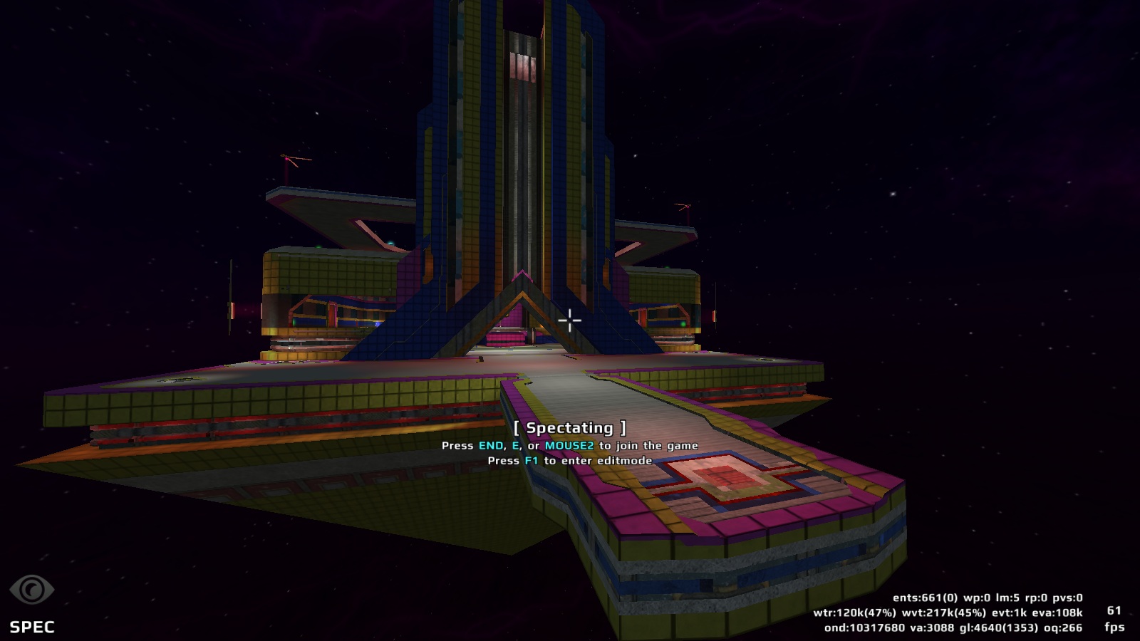 The maps filesize could be improved, the number of octreenodes was reduced from huge 10 millions to big ~1,5 mio. Big thanks to Karoushi here. Few details are reduced softly (as I usually do on this map). The waypoints come back. The most interesting point: although using waypoints I don't get the old hiccups. Surely the map isn't the fastest one and can't generate the biggest framerates, which isn't a surprise when you collate it with smaller maps which are less complex. But the loading speed and playability could be improved again compared to the values in the past.