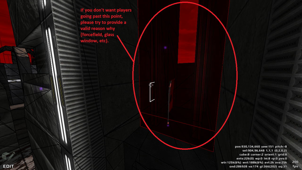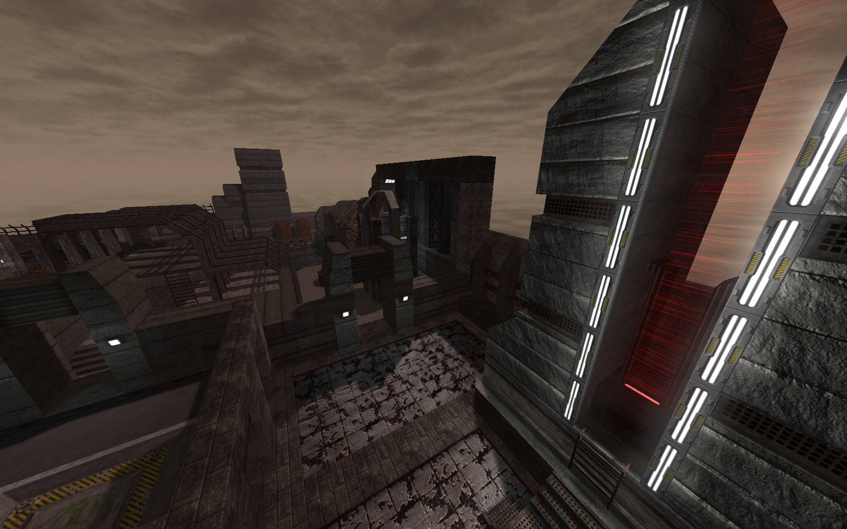 One thing I'm still not entirely happy about is the use of clip around the top of the map, it blocks the player from getting on top of the buildings but gives no valid reason why. I know this is done quite a bit throughout Red Eclipse, but it "feels" a bit more obvious in this map for some reason.