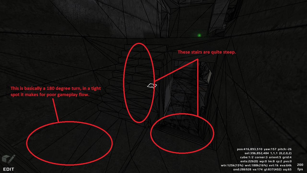 • Ladders are difficult to manoeuvre on, possibly due to the lack of a thick clip on the geometry (bots also get stuck).