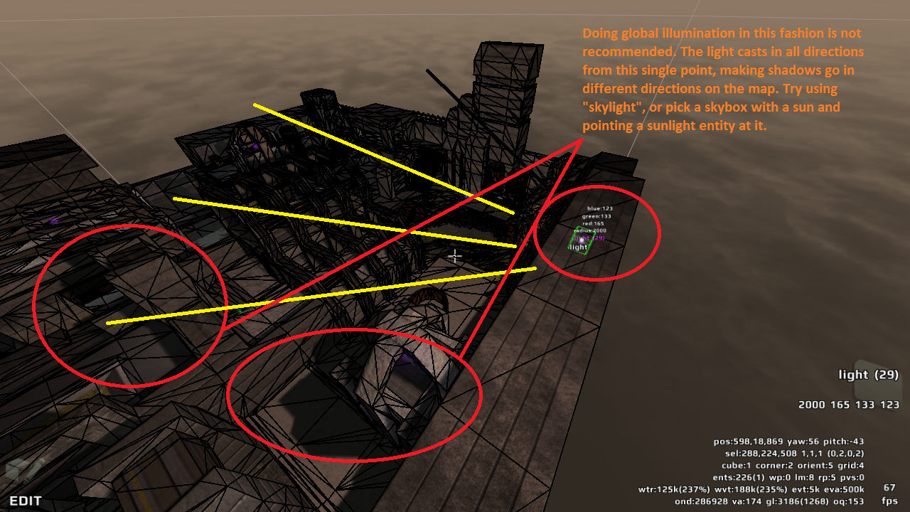 Light entity is moved now more up to fix this wrong displayed shadows (its directions) and added "skylight". Also increased ambient color.