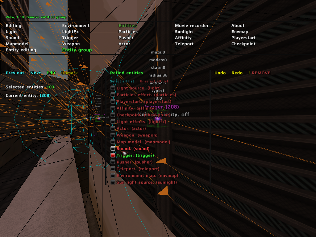 However, it could be easier to take the 1.2 version, because to link all of these triggers and particles plus sound together is a hell of work. I had to link them apartly. It wasn't possible to link a grouped selection. When you imagine I rate the amount of triggers to around 80 and they had to be linked apartly with 10 entities (9 particles and the sound). So I had to fly around the map 800 times back and forth.