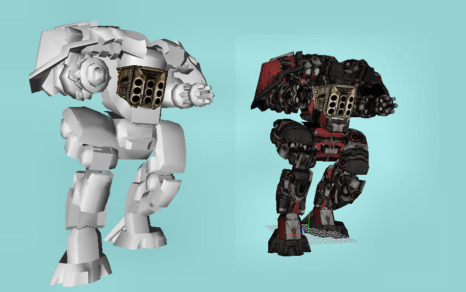 cdxbow {l Wrote}:I have also had to remove the 'big pig' and have had to come up with another meka, excitingly named Mek #9 at the moment. The legs are still the same as Mek #7, on which it's based, so it is still needing work, and it's not textured properly but here it is with 2 skins quickly applied.