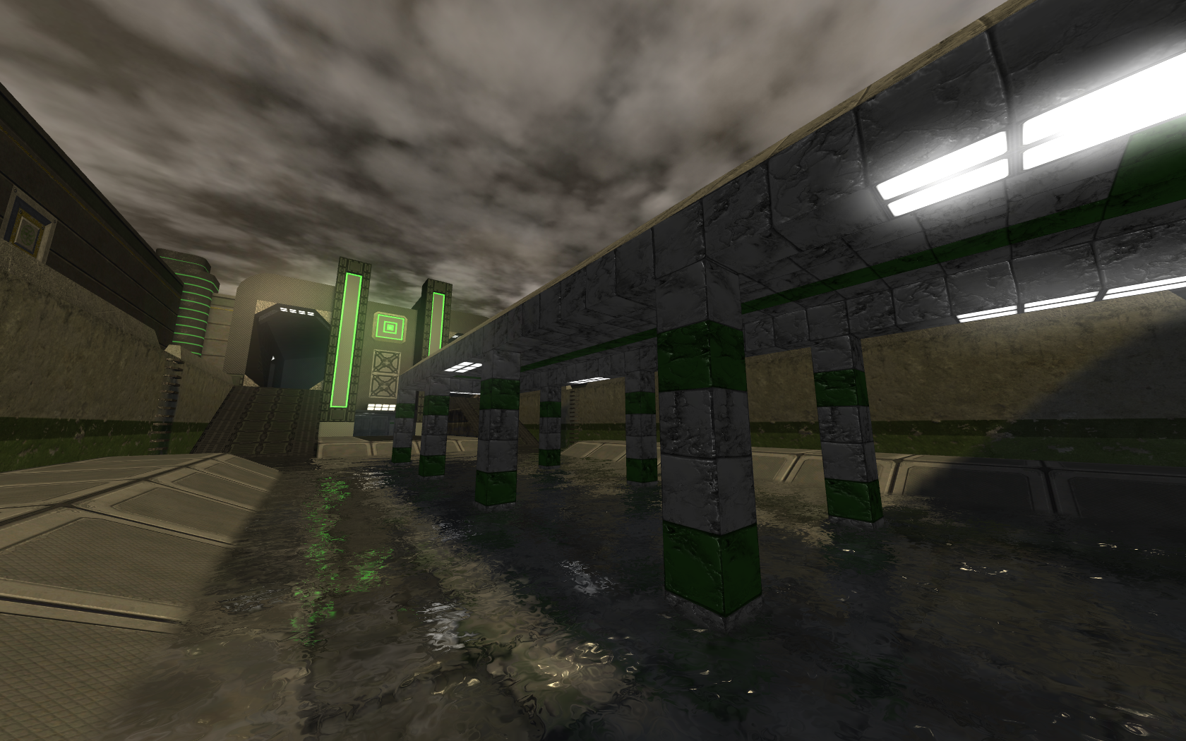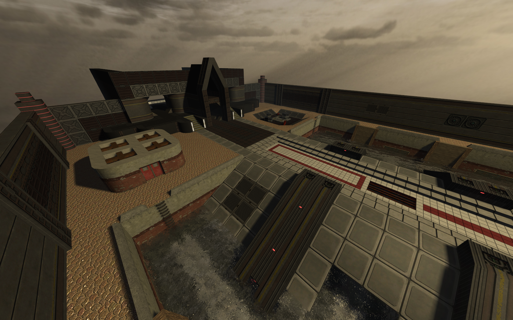 qreeves {l Wrote}:Ulukai {l Wrote}:Spent some more hours of tweaking and working on my map. 95% of the geometry and texturing is done now, these screenshots should give you a basic overview of the map. Note that under the central area of the map there is water connecting all the bases to provide more than 1 way to reach each base.
