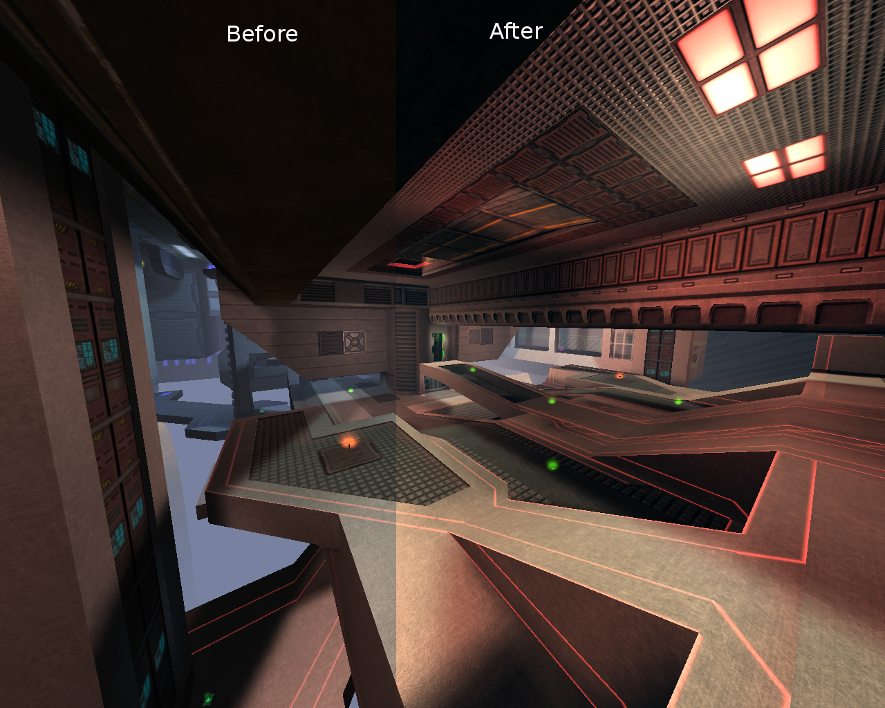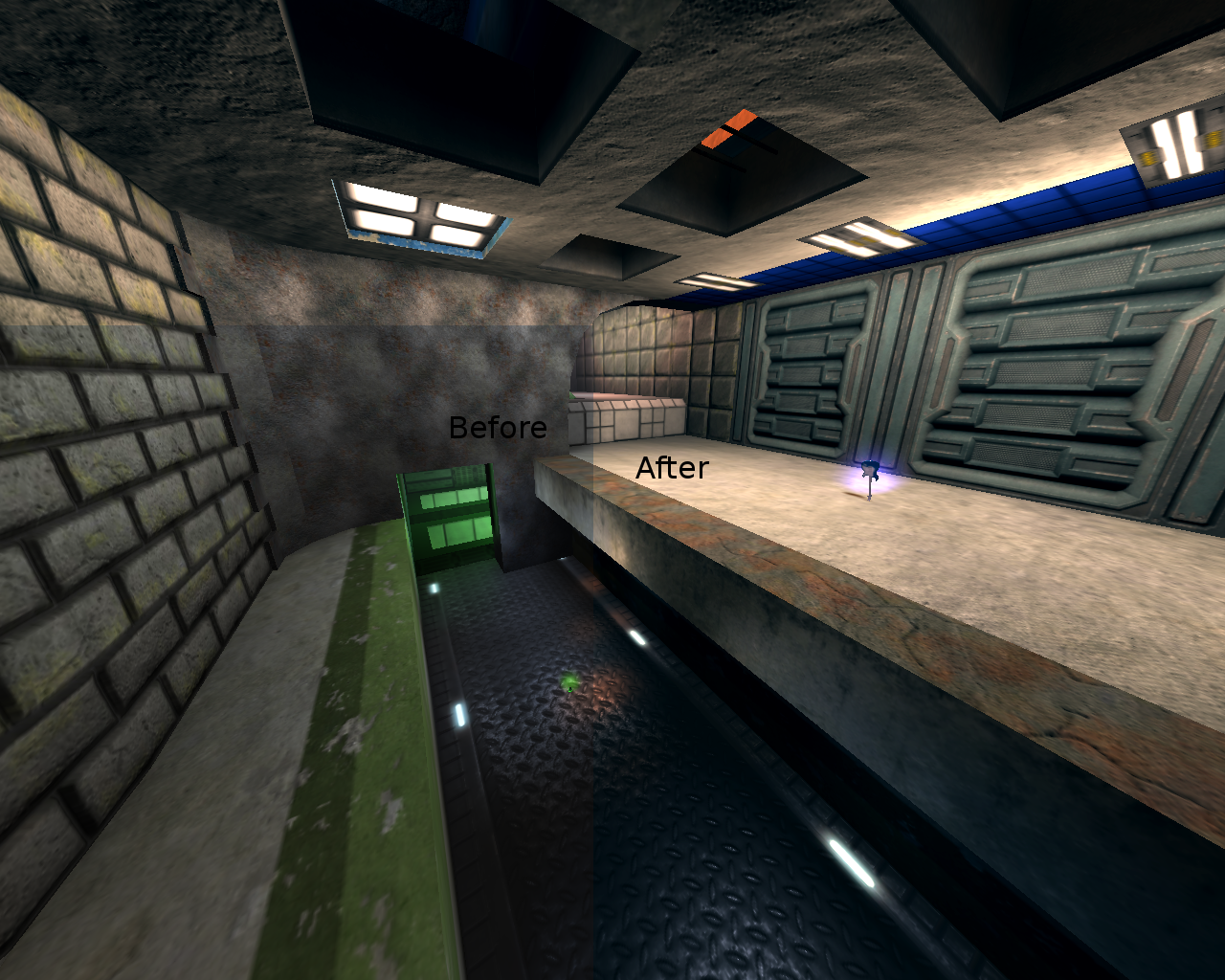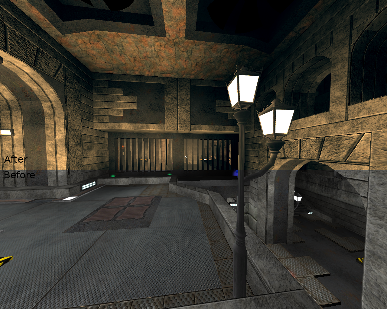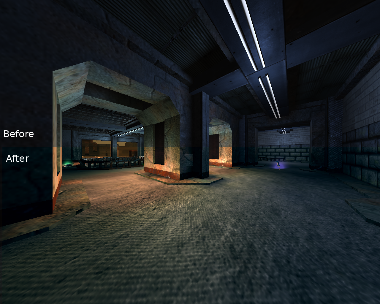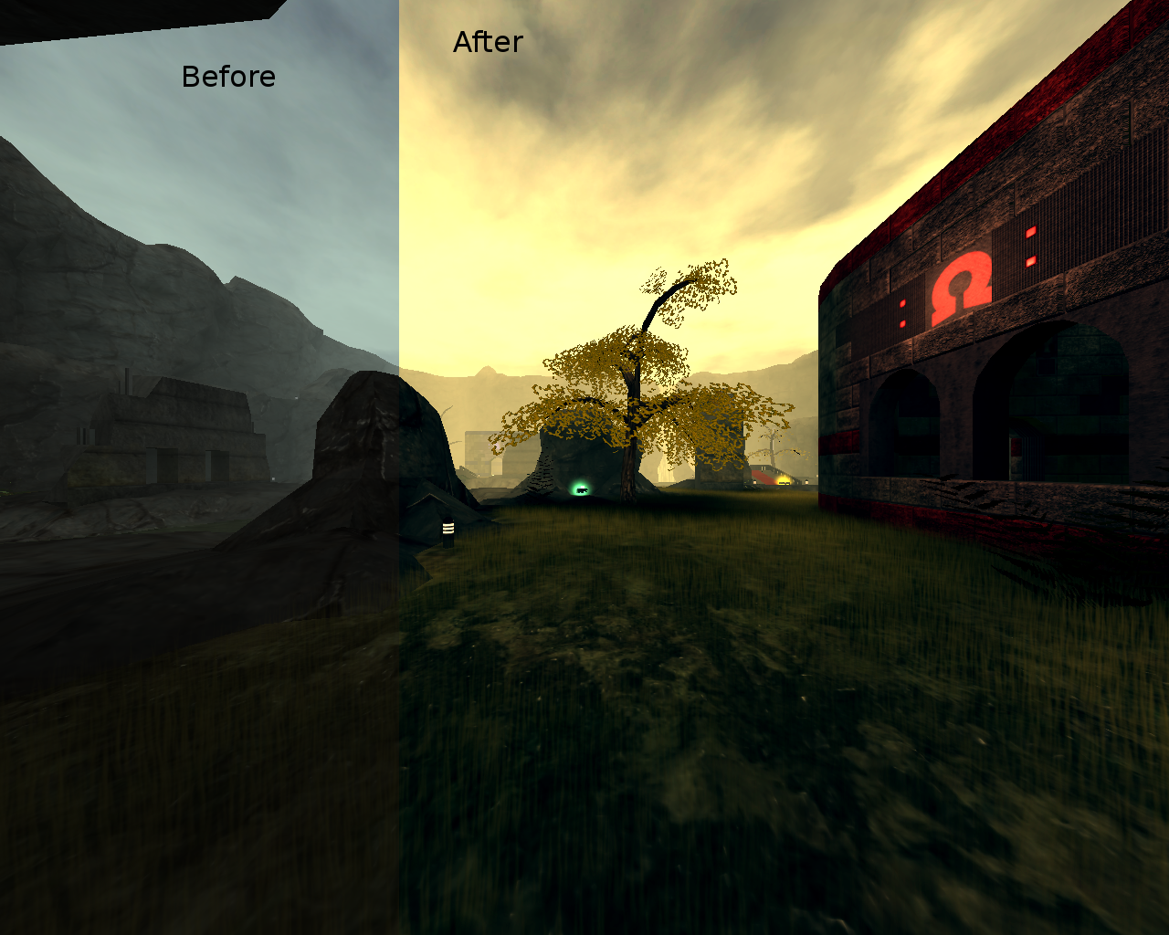 I found out that the post-processing effects are stored in the file "data/config/glsl.cfg", so I decided to mess with them. I found that after a while I could sort of decypher the simpler shaders such as gbr and bw, so I made a shader that does very primitive color enhancement, and I went through a bunch of maps taking pictures. I was able to make a color filter that makes most maks look a lot like Battlefield 3 (or at least like Metro for darker maps), and I also made a custom filter that you can easily change the parameters of.