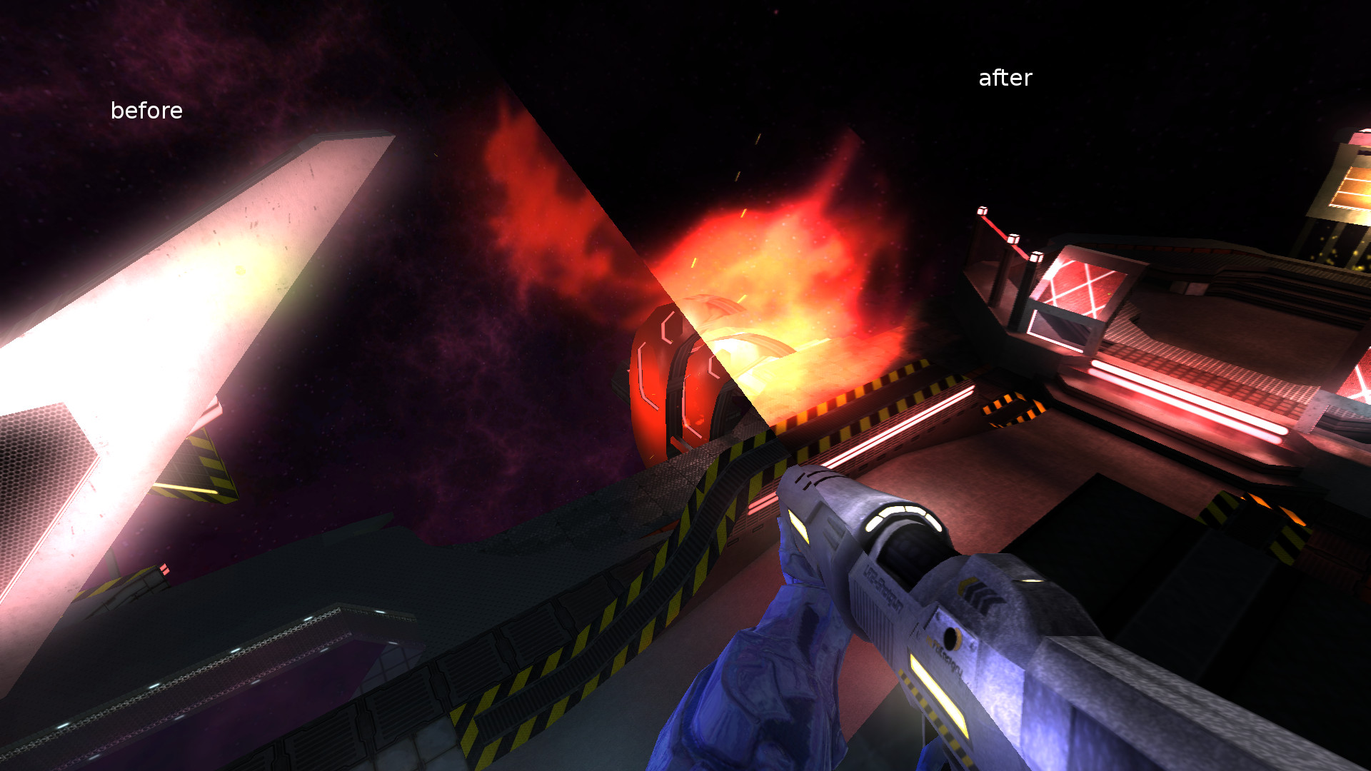In the long run, it would be awesome if there was some sort of auto-color-enhancer (and/or auto-bloom) that could tell if what you were seeing was dark or bright and adjust bloom and/or color accordingly. I'm guessing making something like that would be a lot harder than what I've done, but maybe someone experienced might want to try?