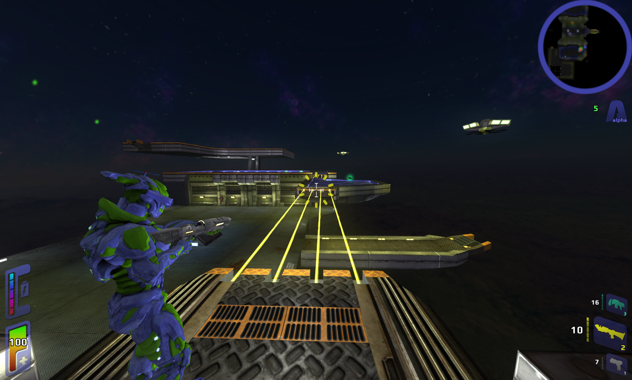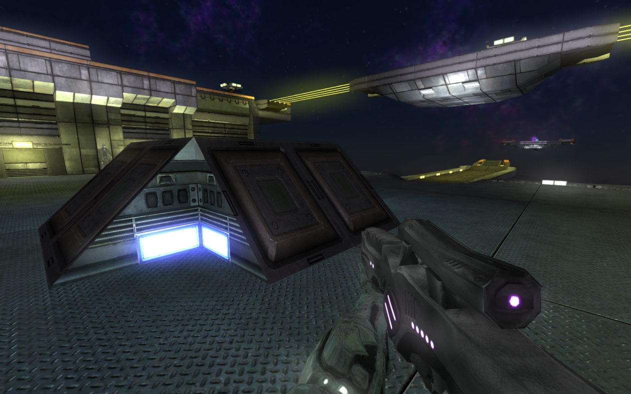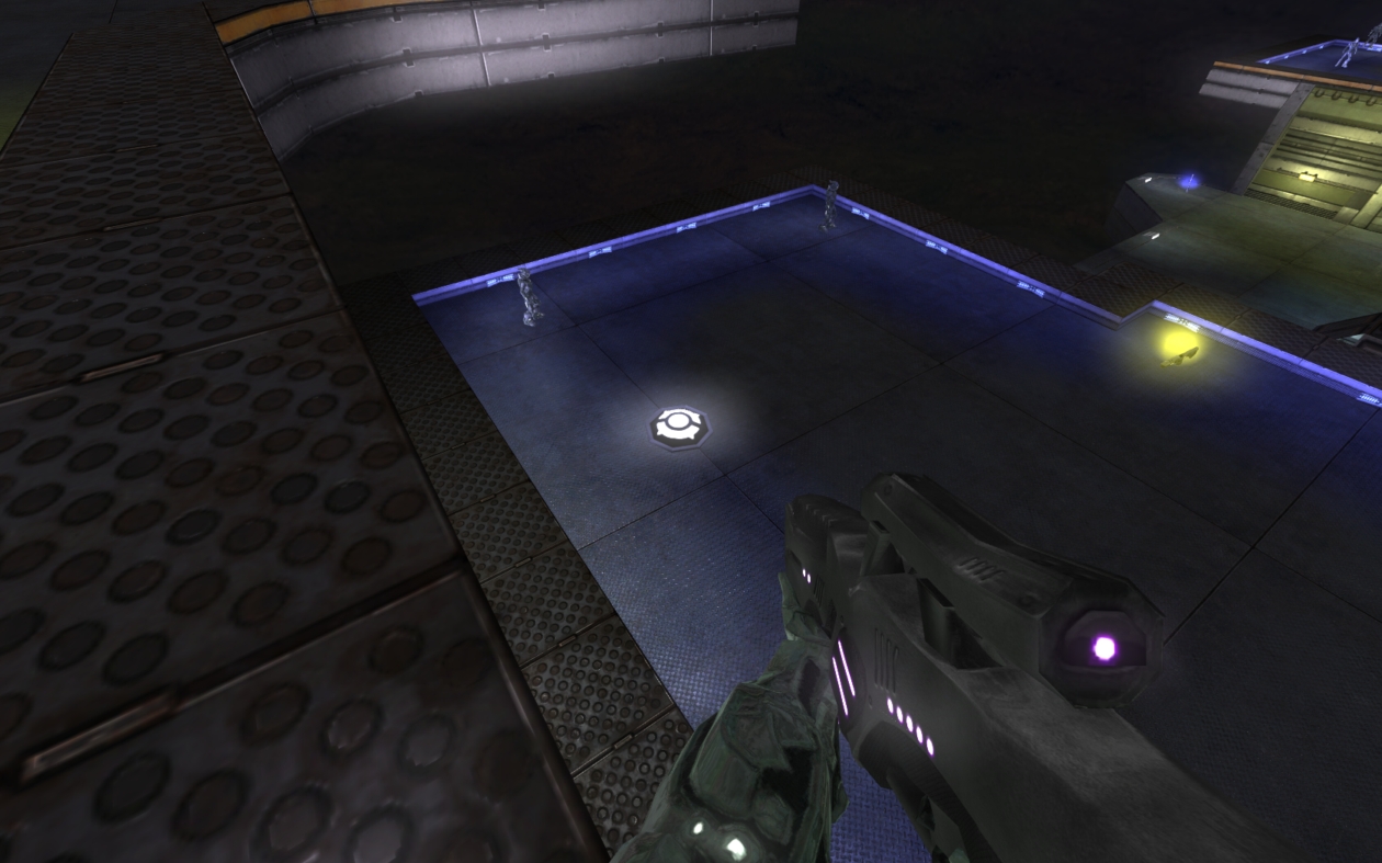 First of all, I realised that you can actually shoot through the laser bridges which adds a lot to both the 'exposed' feeling on the map and to the gameplay as well. This led me to consider another point... read on for more. By the way, Dratz's proposition for making them seem more like bridges rather than deadly lasers is outstanding. It wouldn't really make sense as there are no lights for them to come out of if they are cross-hatched, but oh well.