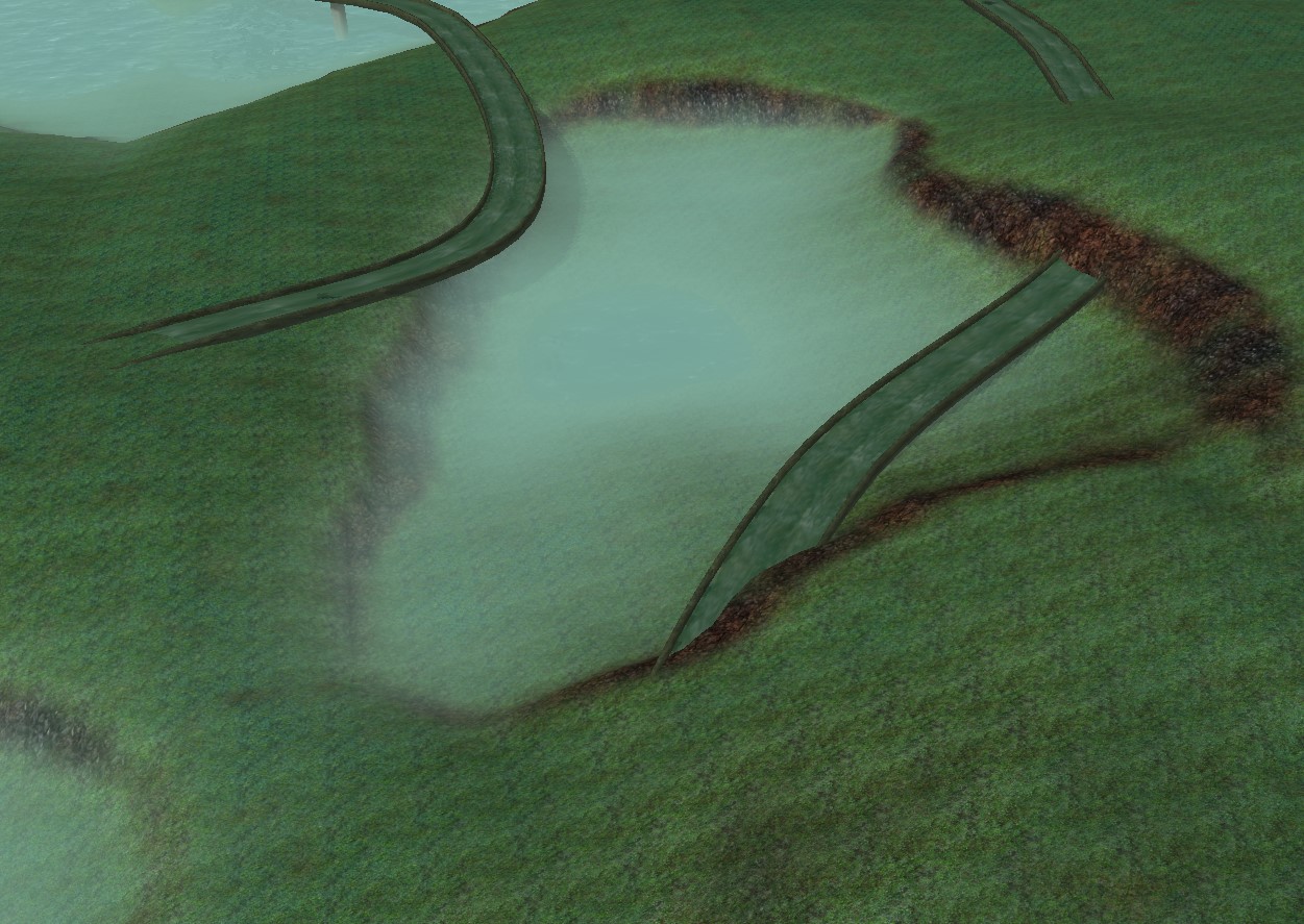 the first one is, in this area the road is invisible in game, it is not set to invisible in the editor