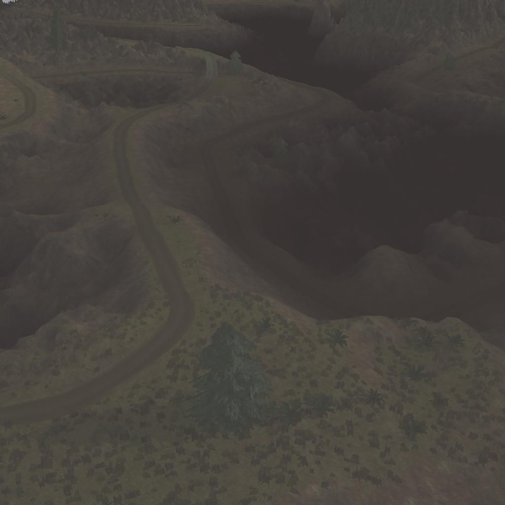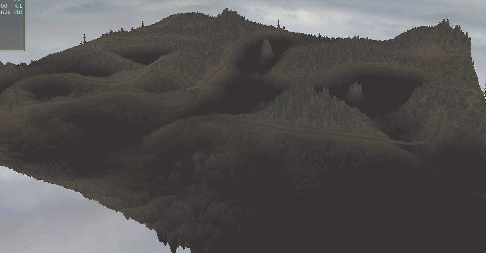 While Sad is dark and rainy, Uncertain is just cloudy and brighter but also foggier and bumpier and riddled with abysses. For the first time in my “spiky” tracks I have added trees but only very few. I have done this to make the scenery appear even more surreal.