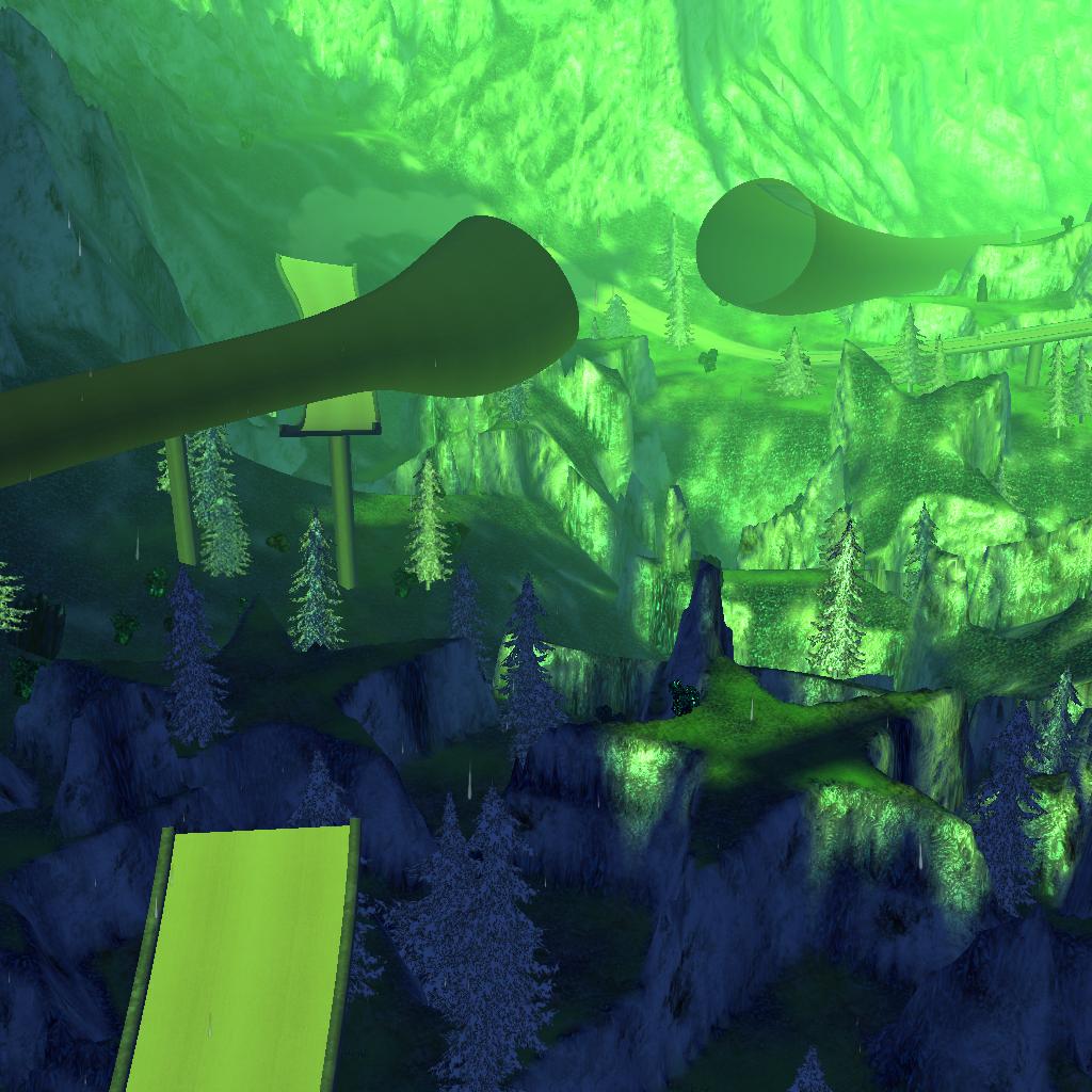 Added height fog with light, more road/pipe materials, 1 more grass, made crystals vegetation a bit bigger, added 2 black pyramids.