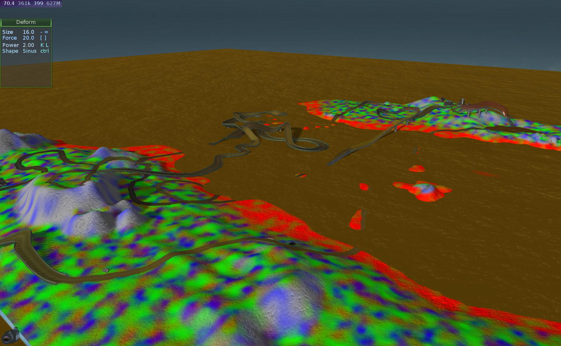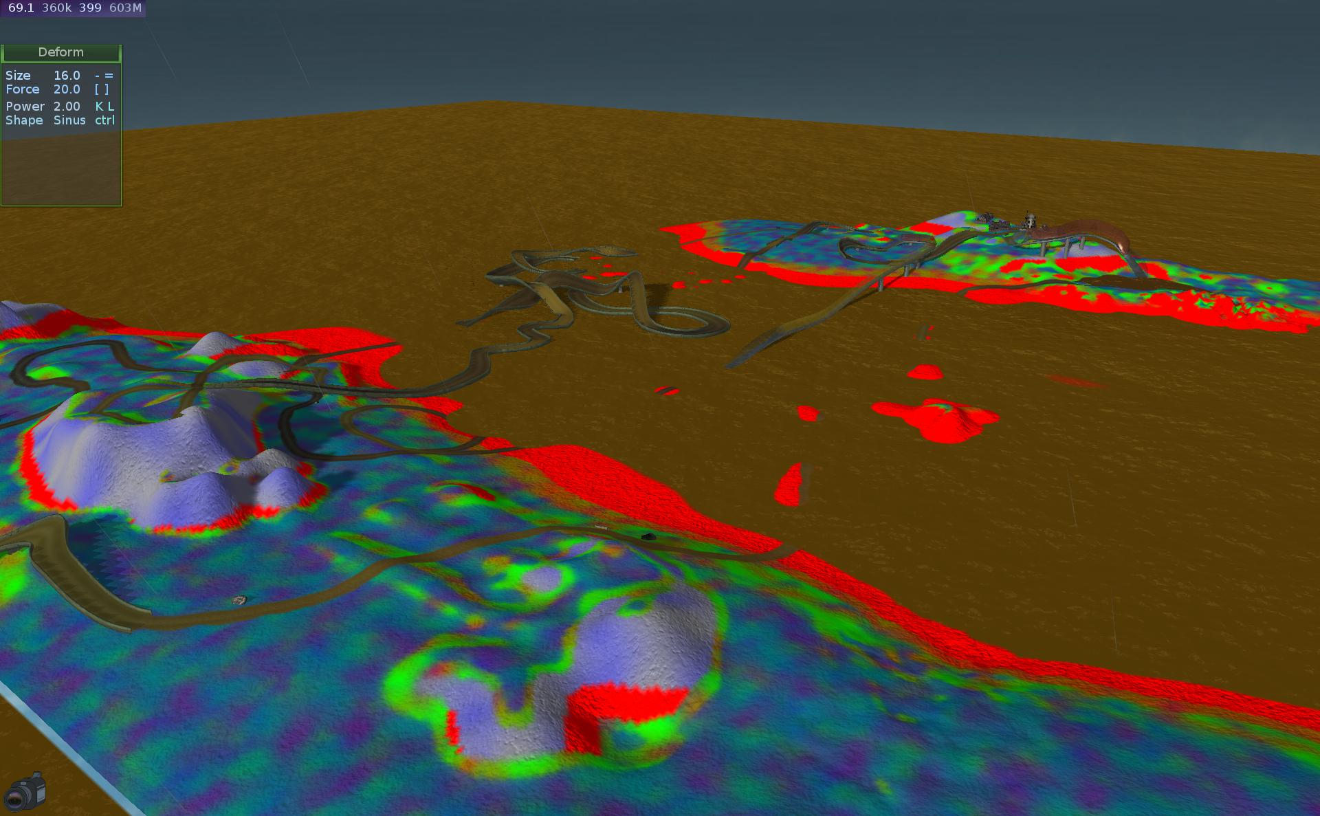 Also notice on left this hard edged red appearing on slopes. This is default layer 0 (red). Shouldn't be used if possible. This is due to empty range somewhere, i.e. angle or height ranges not covered by some layer.