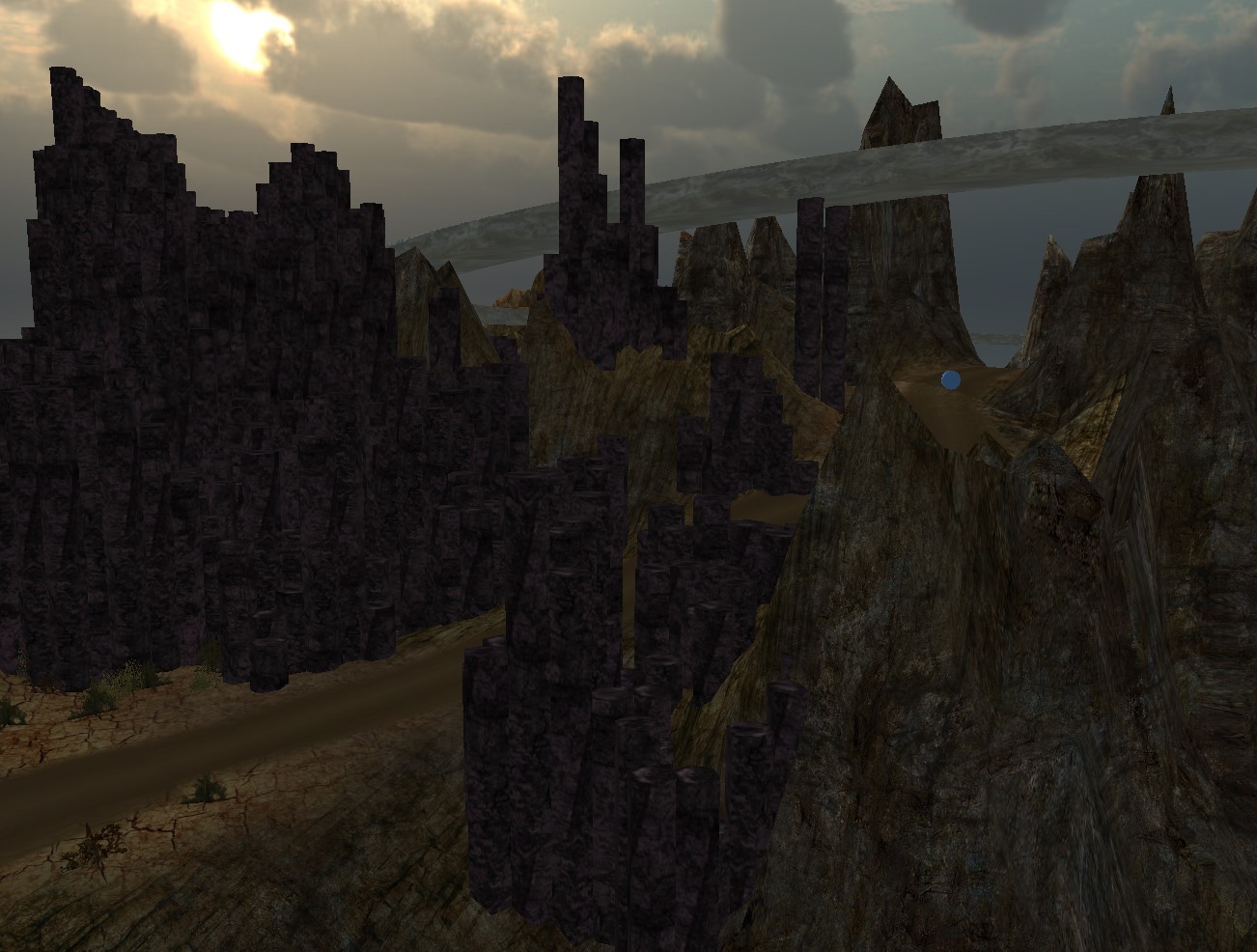 The cliff in the second image has around 2900 tris, and the bridge in the first image 4500
