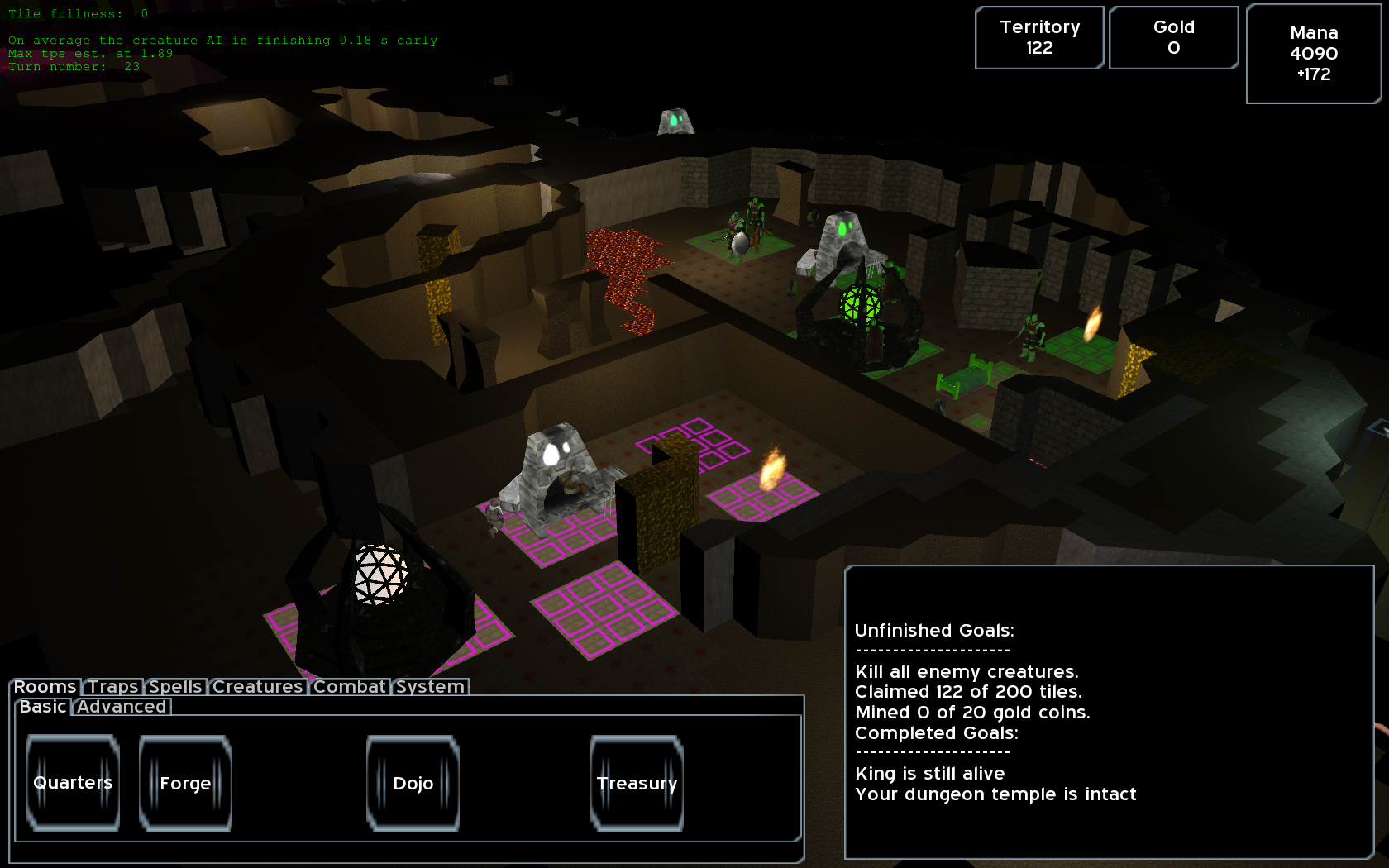 I know we had kicked around the idea of using alpha blending before but I was never able to get it working but now I think we've got it. The only disadvantage is that the emmissive property draws the team color even when there is no light on the object. There may be a solution to this once we tweak the material files a bit more but I think this will at least work for now. Below is a screenshot showing the team colors on all the objects. Most of them look broken because they have not been set up but the Forge and the Dungeon Temple both seem to work pretty nice after just minor tweaking to the material files of both. On the forge I took the select tool and just cleared the two "blobs" you see to alpha=0.0. Let me know what you think of this system. If you think it's a good one then I will try to get a material script set up we can inherit from for all the other materials so we don't have to hand-code each one.